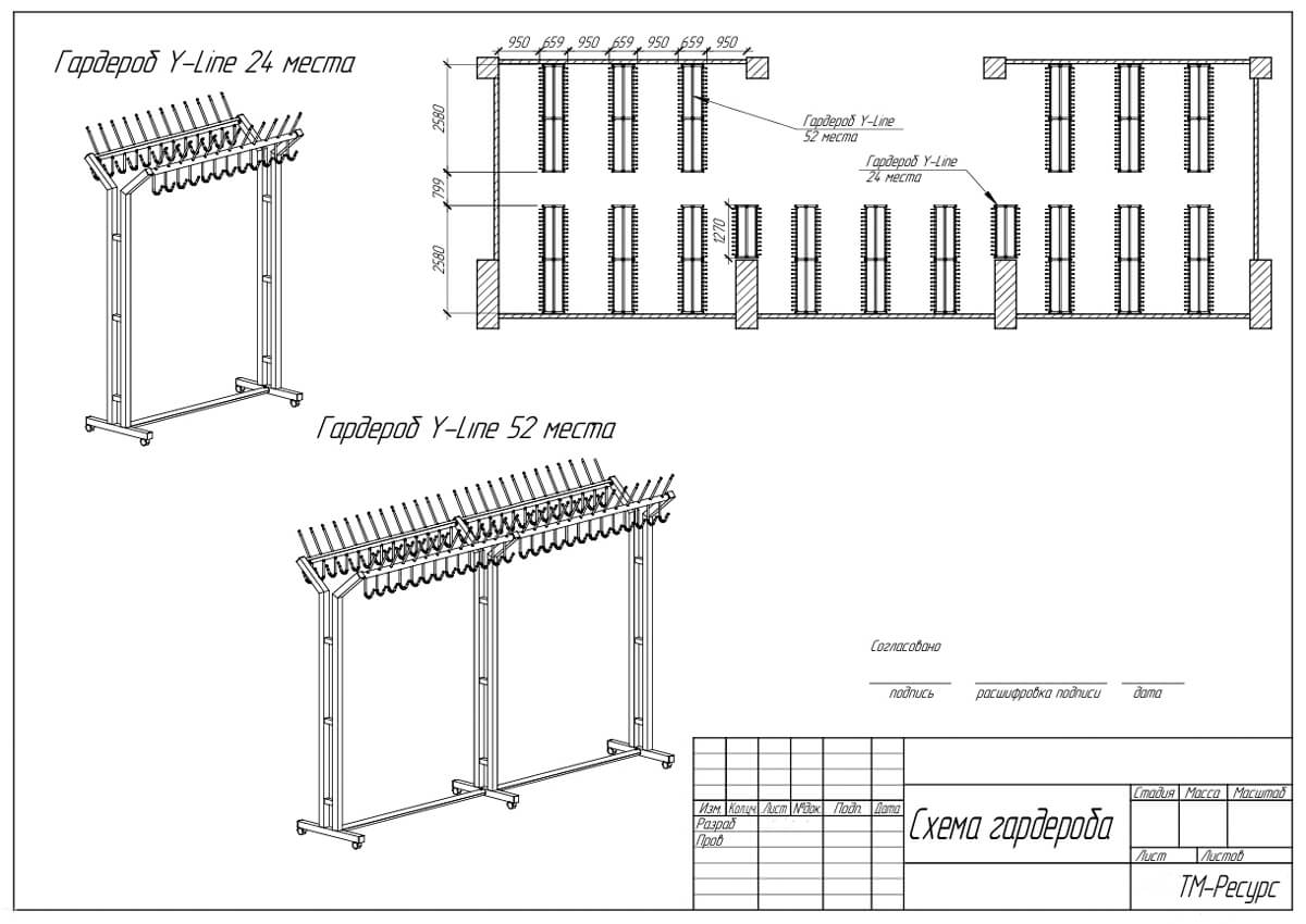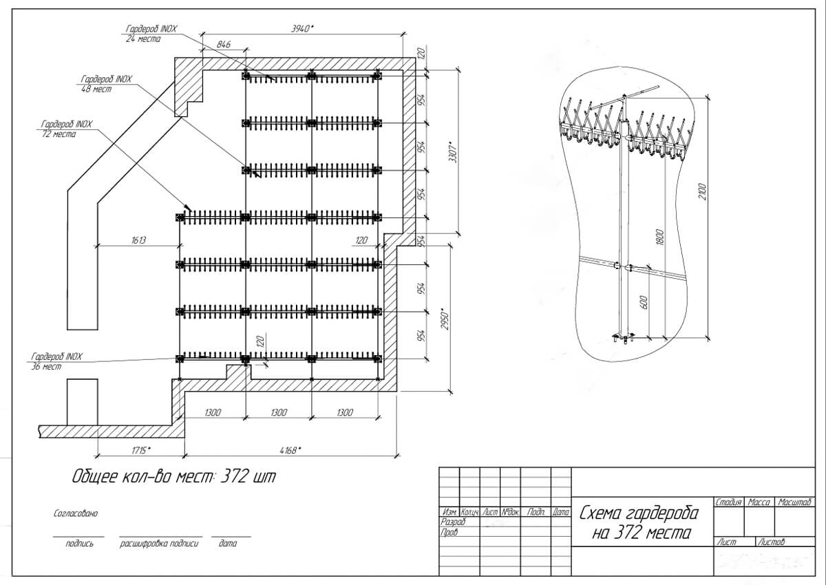 От вас потребуется план помещения и необходимое количество мест. Мы предложим вам варианты гардероба по моделям и материалам, сделаем проект оптимального размещения оборудования.